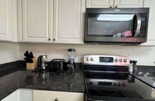 Located in a quiet, safe neighborhood, this home provides easy access to local attractions and activities. The fully stocked kitchen, complete with pots, pans, cooking utensils, and a coffee maker, is perfect for preparing home-cooked meals, while the large family room, outfitted with a cozy sofa bed and a 70-inch Roku smart TV, ensures everyone has a place to relax.