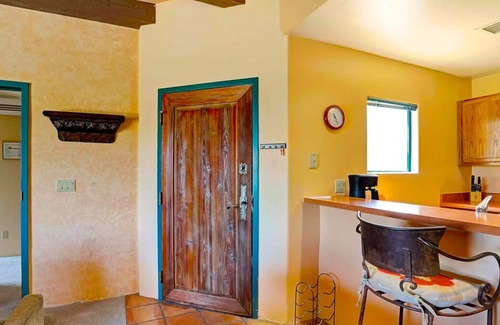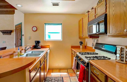 The fully equipped kitchen will delight even serious chefs with gas stove, ample food prep area, microwave, and a larger-than-average supply of cooking utensils and dishware. Extras include a deluxe juicer and several coffee makers including a coffee grinder. You may even choose to eat at the counter while seated in the Mexican style bar chairs.
