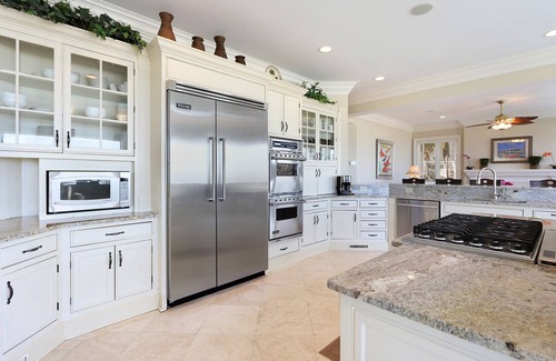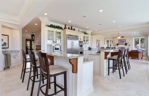 - Gourmet Kitchen: The state-of-the-art kitchen is designed for large gatherings, featuring high-quality stainless steel appliances, a wrap-around granite bar, and ample seating for group meals or post-wedding celebrations.