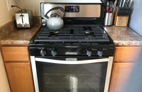 New modern appliances such as, refrigerator, stove, oven, microwave, dishwasher and coffee maker.