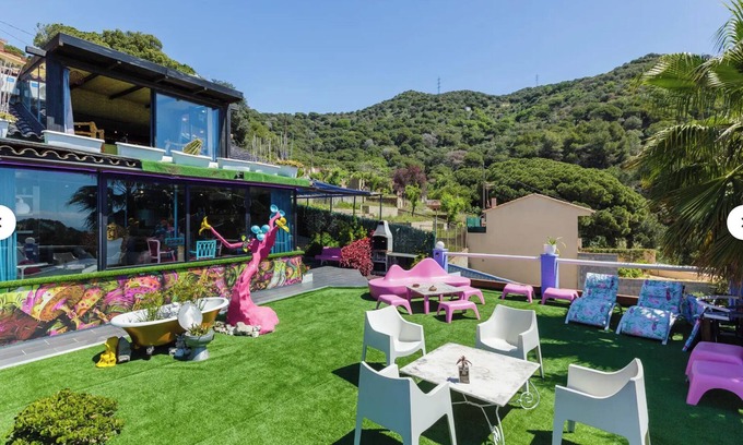 750m2 of land. 3 bedrooms with double beds, one of them with exceptional views of the sea and the mountains. 2 full bathrooms, American kitchen, 80m2 garden, 70m2 loft room, 30m2 porch with foosball, electronic dart board, fireplace, internet. Netflix, Spotify, Harman Kardon sound system. Small 3m2 pool. Unique and original decoration, made by the artist, owner of the house. Quiet and very relaxed place where you can rest in the mountains with exceptional views of the sea and the mountains. Pets Allowed. Special care is requested with the children since the house is full of unique objects.