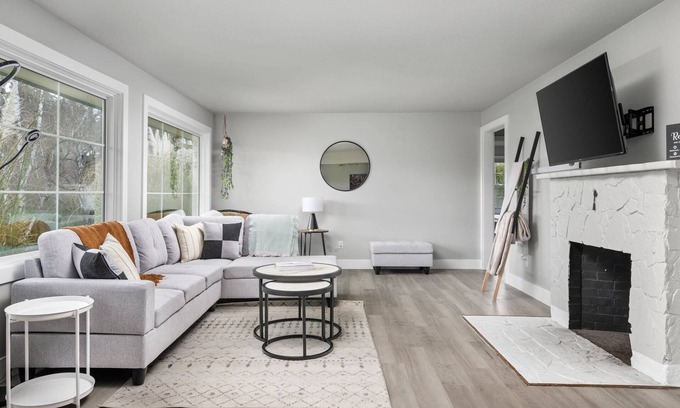 Most every bit of the interior was updated, upgraded, and uplifted for you. Every bit of décor and furnishing is brand new. Each piece was curated to create that perfect blend of style and comfort for your group. Without a doubt, one of the most pleasant features are the oversized windows that help bathe most of the home in a warm natural light.