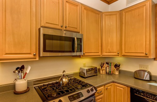 The main floor (wheelchair accessible) is a great place for games, movies, reading, conversation or making music. This floor features 2 bedrooms (4 queen beds) and 2.5 baths. Features include an open living area with wood burning fireplace and smart tv with Direct tv access, an atrium featuring a grand piano and breath taking mountain views on three sides of the room. The dining area features seating for 12+. A spacious, well-equipped kitchen features stainless appliances including gas range, dishwasher, 3-door refrigerator, and counter top microwave, ample dinner ware, pots, pans, flat ware, etc.