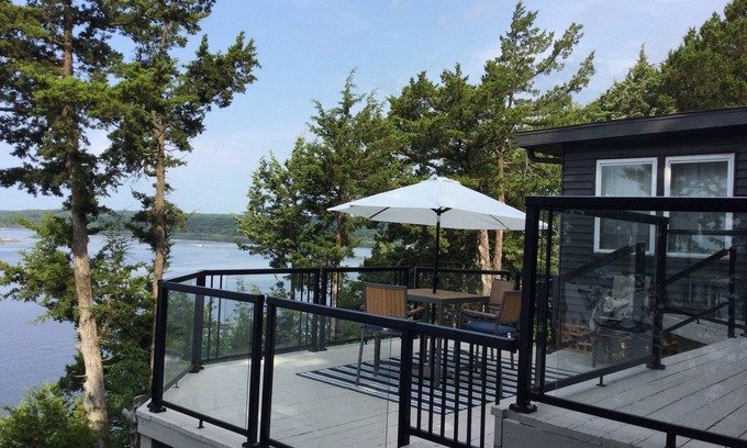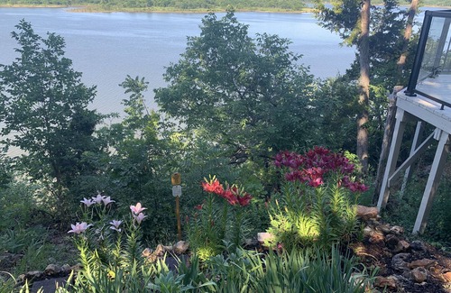 Our home sits on a bluff overlooking the Grand River Arm of Truman Lake. Experience beautiful sunrises and sunsets. Less than ten minutes from Long Shoal Marina. Small boat ramp in neighborhood. This home features a master bedroom with adjoining master bath, a second bedroom and a finished sleeping porch that sleeps four. New hardwood and tile floors. Washer and dryer. Sit outside and enjoy incredible lake view. (Watch the Bald Eagles flying along the bluffs.) Gas barbecue grill. Please note, we now have WiFi internet :)