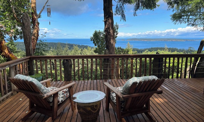 Charming, studio apartment with large deck, breath-taking views of the shipping lanes and Canada. The views don't stop at night--we have star gazing galore on a clear nite. And you can see the lights of Vancouver from the deck.