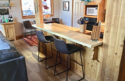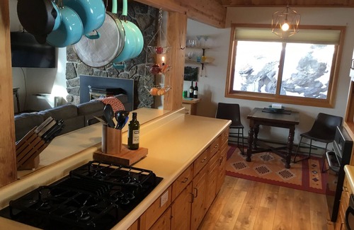 The living room has a comfortable newer sectional and incredible mountain views to make you feel as if you are constantly outdoors. Come put your feet up and enjoy! The adjoining 550 sq. ft. deck with charcoal grill and seating for 8+ make it perfect for entertaining. Just down the mountain, you can see and hear the river for complete ambiance. End the evening around the large fire pit, watch the stars and plan your adventures for the next day!