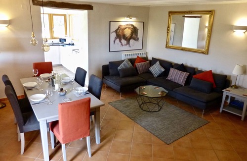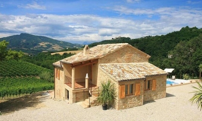 Casa delle Vigne is a beautiful detached farmhouse set in the rolling hills of Le Marche. It was lovingly restored to a modern yet traditional standard and has a new kitchen extension which has wonderful views over the private pool. Air conditioning in the 3 bedrooms for when it gets too hot. There is a shaded outside terraced eating area with breathtaking views stretching across vineyards for al fresco eating with the spectacular Sibilini Mountains on one side and the picturesque, nearby village of Patrignone on the other. The private swimming pool (open May to September) is surrounded by travertine marble, with sunbeds and parasols. There is a decked shaded area with outdoor sofa & chairs for when the sun gets too much, where a hammock sways in the trees. Inside is a comfortable lounge with a corner sofa, TV with Netflix, a good selection of DVD's and games are available and a bluetooth speaker.