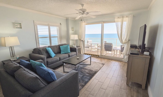 Our corner unit is private and peaceful, overlooking a no drive beach and allows total relaxation and enjoyment of miles of unobstructed ocean views for guests.