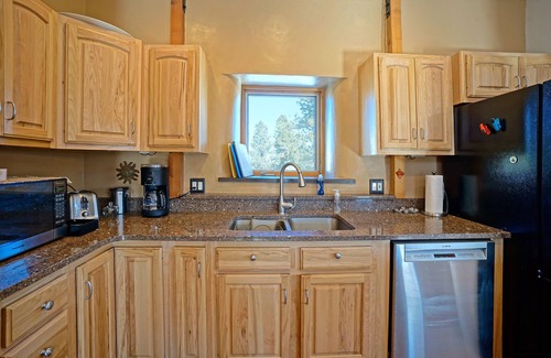 Downstairs includes 2 bedrooms, a well-stocked game room, and a full bath. A washer and dryer are in a separate laundry room. All bedrooms are equipped with humidifiers to help ensure your comfort in the dry mountain air.