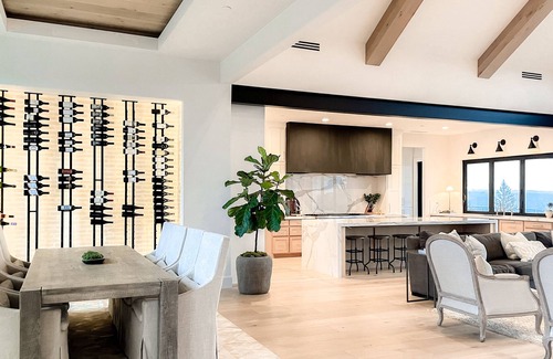 Prepare your meals in our gourmet chef's kitchen and serve your guests in the dining room with the unique backlit wine wall.