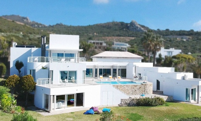 Villa Barbaria is an elegant chalet located on the German Beach, with around 2,200 m² of private garden. It has been designed by Mr. Antonio and Mr. Carlos Lamela, architects of the highest international recognition, in homage to Le Corbusier, in pure rationalist style, and has been published by prestigious national and international magazines.The built surface area of the house is approximately 610 m², and it is situated on a small hill overlooking Africa and the Strait of Gibraltar. It features six bedrooms, five bathrooms, a toilet, a stunning swimming pool, heating throughout the house, and air conditioning in all bedrooms. The shape of its chimneys, white metal railings, and multiple 'covers' on its terraces evoke the forms of a boat surrounded by ocean water. Villa Barbaria offers unbeatable sea views. The transparency and open nature of Villa Barbaria redefine the concept of habitable space by emphasising volume and natural light. True to this concept, the main terrace is a natural extension of the rest of the house. The Villa offers complete intimacy and privacy in its exterior and interior spaces. On the ground floor, immediately upon entering the house, there is a spacious living room with a fireplace, equipped with a seating area, a large dining table where you can enjoy excellent meals, and access to the terrace and outdoor pool area. From there, the house is distributed into two wings, one of which contains a service room or children's room with two single beds, a bathroom, a toilet, a fully equipped kitchen, and a spacious bedroom with a double bed, walk-in wardrobe, and an en-suite bathroom with a jacuzzi. On the left wing of the house, on the same floor, there are two bedrooms, both with two single beds each, which share a bathroom, and another bedroom with a double bed and an en-suite bathroom from which you can enjoy impressive views and access to the garden. On the upper floor, there is another splendid bedroom with a double bed, an en-suite bathroom, and access to a large terrace from where you can see wonderful sunsets.Villa recently renovated where you can enjoy a luxury holiday and enjoy our wonderful crystal-clear beaches, as well as having a wide range of water sports and activities in contact with nature.The nearby village of Zahara de los Atunes has all types of shops, a small market where you will find both fish and seasonal fruit, pharmacy, medical care centre, etc. as well as renowned restaurants where you can enjoy our splendid gastronomy.Cleaning is included within the rental price for 3 hours a day, 3 days a week on alternate days.- The use of the barbecue is free. However, it is mandatory to leave it clean after use. In the event that it is left dirty, 100 € will be withheld from the deposit to cover cleaning costs.- Free WIFI- Pets are admitted with an additional supplement.