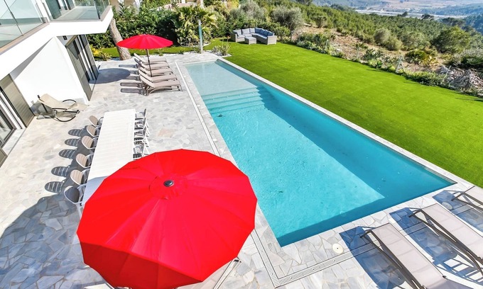 A spectacular designer home featuring magnificent panoramic views of the sea and the iconic Montserrat mountain. The swimming pool is simply stunning.