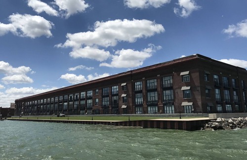 This two bedroom, two bathroom luxury condo on Sandusky Bay's waterfront is the perfect getaway for six! Fully upgraded amenities and a view of the beautiful bayfront await you. Handsomely appointed with a master suite featuring a memory foam mattress, flatscreen cable tv, 650 thread count sheets, his and hers vanity and high-output spa shower head. Guests will enjoy a spacious bathroom, flatscreen cable tv, and queen size beds with 400 thread count sheets in both the guest bedroom and on the sleeper sofa in the great room. Stainless steel appliances, custom ceiling fans and kitchen tile backsplash, hardwood and granite throughout give this space the high-end lakefront loft appeal you love! This unit is fully stocked with kitchen essentials, bath towels, beach towels, barware and more. Access two large grills near the pool to utilize the all-new BBQ equipment provided to you. Relax with full access to the pool and jacuzzi spa or hit your stride at the in-house fitness center. The Chesapeake Lofts is just steps away from downtown Sandusky restaurants, bars, nightlife and more. If you are a roller coaster fan, you are just minutes from Cedar Point's rides and attractions! On a rainy day, enjoy a selection of favorite board games right inside the condo. No pets allowed.