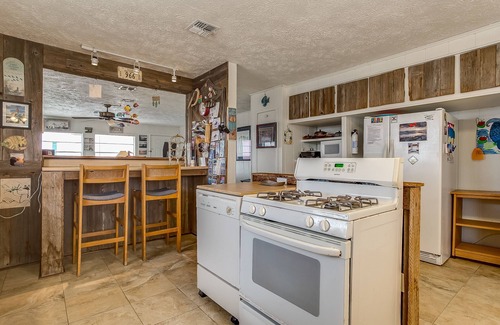Get ready to escape to our amazing 2BR/2BA Laguna Madre Bayhouse, which has the best sunrises and sunsets in the Coastal Bend and spectacular water views! Our bayhouse has a comfy beach style with plenty of lounge space in our living room. The living room has Digital cable Hi-Definition TV so while you are on vacation you can still catch all your favorite shows or sporting events. The living room also has a futon sofa for extra guests. Our kitchen is fully equipped for all your cooking needs, with an open flow into the living room, so the cook never has to miss a minute of the action. This space is perfect for entertaining friends and family with the dining room, kitchen and living room all connected. Our two bedrooms are outfitted with bunks beds for friends and family to hit the hay after a long day out on the bay or beach. The first bedroom has two twin beds with one full sized bed under a twin bed and the other with two twin beds. The second bedroom has one bunk bed with a full sized bed under a twin. If you are anything like us, most of your time is going to be spent hanging out on our great front porch overlooking the Laguna Madre or on our 330 foot pier (please note that there are no lights at the end of the pier), just steps away from our front door. You can tie your boat up on the canal pier or just float in the water with friends and enjoy the sun!