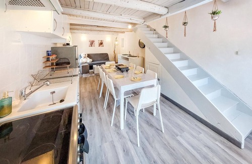 The welcoming historic stone house welcomes you in a privileged location on the riverbank. It is a very quiet townhouse in the heart of Saint-Floret. Enjoy a relaxing getaway with your loved ones in the appealing rooms, where bright furniture and modern furnishings create a charming mix with original elements. Look forward to shared meals or entertaining game nights in a homely ambience, after an eventful day you can sit together comfortably for a long time, put your legs up on the sofas and chat or dine together at the dining table.