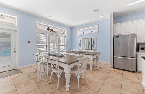 Your stay at this luxurious property boasts an array of amenities that cater to all your needs. Enjoy seven elegantly appointed bedrooms and 7.5 bathrooms, ensuring comfort for everyone attending your celebration. The spacious open-concept living area includes plush seating and a flat-screen TV, while the fully equipped kitchen features stainless steel appliances and granite countertops, ideal for hosting gatherings. Step outside to discover a sparkling private pool surrounded by a generous deck and outdoor seating—perfect for relaxation after the festivities. Additional perks include complimentary beach setup, seven adult bikes for exploring, and nearby dining options to indulge your culinary cravings.