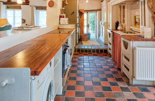In this comfortable house, which welcomes you in an attractive location halfway between the famous Mont St. Michel and Dinan, all family members will feel at home from day one. You will spend your vacation in an authentic Breton stone house, with contemporary comforts inside. Relax in the cozy rooms, where the beautiful wooden beams and exposed brickwork in places, as well as the tasteful furnishings, give a special charm. The living room quickly becomes the center of common activities. After an eventful day, you can make yourself comfortable here, relax in the sofa area and chat comfortably for a long time. A bath in the freestanding bathtub also offers pure relaxation.