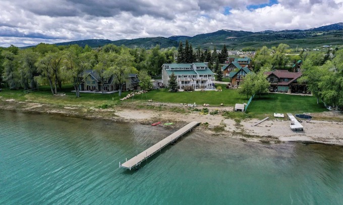 Spinnaker Point is one of the best beach front locations in Bear Lake! There are many beautiful places to rent here in Bear Lake, but what Spinnaker Point provides as a place for your family to call home base is truly unique. In addition to the 4,400 sq. ft. luxury remodeled townhome space, you'll have so many more amenities that will make your vacation unforgettable. Being a beach front property, you'll have easy and private access (shared with only 5 other properties) to the lake. There is a brand new 80 foot dock that extends out into the lake, which provides an easy place to temporarily dock your boat/jet skis (the water level is constantly changing--dock at your own risk). The 2/3rd acre of lawn provides the perfect place for kids to run around and play yard games. The fire pit is a great place to gather in the evenings and roast s'mores. In addition to being right on the lake, you are also within walking distance to all of the restaurants, shake shops, and stores in Garden City. The location of this condo is truly unbeatable.