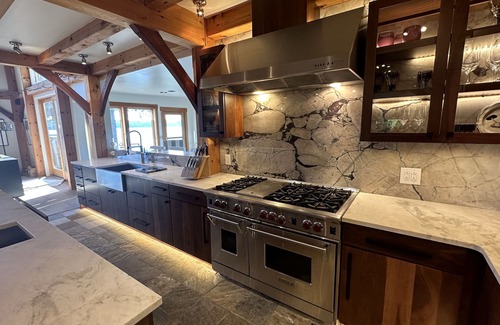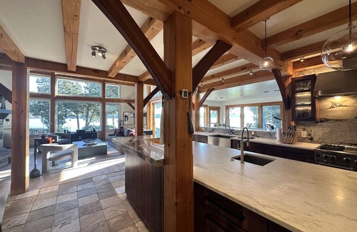 THe Adirondack inspired contemporary lakefront home will leave you breathless. Custom built to perfection, high end finishes and design of this 4200sf home are a stunning compliment to its panoramic lake and mountain views. The charm and craftsmanship are evident in the wood beamed ceiling, wood and stone floors, grand stone fireplace and floor to ceiling windows. The spacious , ope concept chefs kitchen features granite countertops, wolf range and grill, sub zero refrigerator , and a center island peninsula with additional seating With vaulted ceilings and lake views, the master suite is a true retreat. It also includes a jetted tub, steam shower and separate vanities.