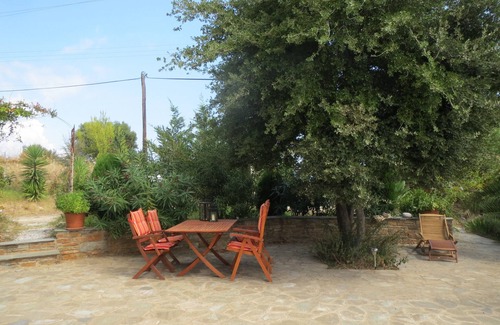 Avra - the fresh breeze explains the name of the house and ensures that it is cooled by natural wind even if the days are really hot. The house is 60m away from the street and there is no possibility to see the patio / terrace from the street. The house has been build in 2009 in a traditional way and therefore fits perfectly to the surrounding. A balcony, 3 terrace and a roof invites for a cozy and recreative vacation. We are using the house ourselves and the furniture are our taste. Two bathrooms with shower and 3 bed rooms can serve up to 6 person and two of the bedrooms have access to the balcony. The kitchen and living room are open and the Kitchen has all electrical devices for your usage. A chimney will spend you romantic nights in the living room. All terrace have as floore natural stone, 1st one is app. 160 square meters surrounded by flowers, the second one is out sunshine terrace which spends in spring and autumn wonderful warm hours. On the third one you can take a shower outside. Furniture for the garden are available and from wood, including 2 big tables, 8 chairs and 4 deck chairs will offer you full comfort.