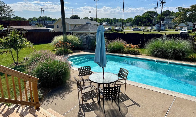 The pool has a full concrete patio area, additional seating outside with deck area, grilling and fenced yard for the privacy of stay!