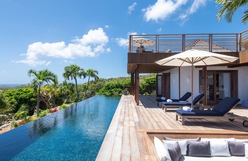 In the heart of a superb environment, the villaoffers a breathtaking view over the sparkling ocean. It is the perfect place for a unique stay in St-Barths for up to twelve people.