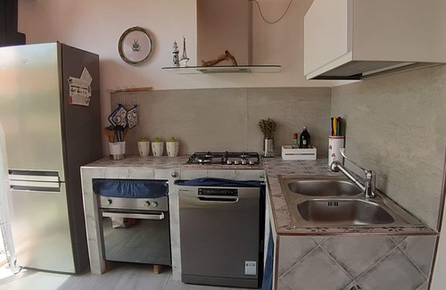 The private villa is made up, in addition to the private garden of about 700 square meters, of three bedrooms, two bathrooms, an internal living area of approximately 35 square meters. with a suggestive masonry kitchen, preciously decorated with characteristic antique tiles, equipped with all comforts (electric oven with pizza mode / program, dishwasher, 4-burner hob, 200 liter fridge) and a spacious outdoor living area, also with large built-in kitchen with 4-burner stove, external sinks, barbecue, also preciously decorated.