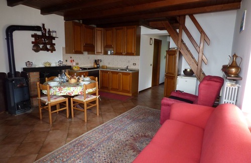 Casa Emilia is 4 km away. from Sorico in the characteristic hamlet of Bugiallo, it is surrounded by a large garden with table and chairs, offers private parking on site and allows pets. The house is located just 15 minutes drive from Lake Como, has a balcony with fantastic views of the lake and mountains. It includes 2 bedrooms, a bathroom with shower, living area with sofa and dining area with cozy fireplace, kitchen with oven, gas hob, kitchen utensils, refrigerator, coffee machine, toaster, washing machine. The first double bedroom is equipped with wooden wardrobes, the second bedroom with three beds is located in the attic, has wooden floors and a ceiling with exposed beams, are equipped with sheets and linen. Casa Emilia is 60km from the nearest airport. and from Lugano 39 km. It is a non-smoking facility and we speak English, French.