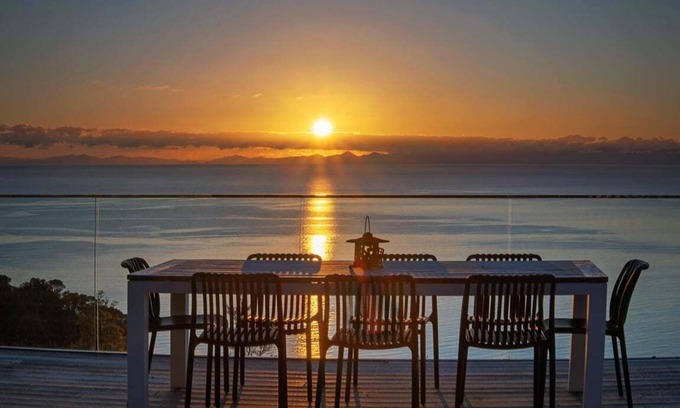 • Named for the iconic and nearby Split Apple Beach, this holiday home occupies a forested hill-top above the ocean, affording exceptional elevated views across a huge swarth of the Kaiteriteri - Abel Tasman coastline, across to Nelson and the spectacular Richmond Ranges beyond.