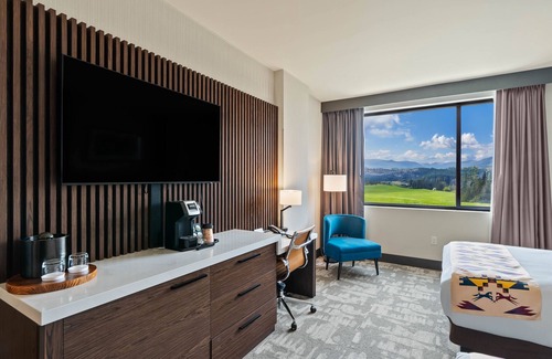 Spokane Tribe Resort and Casino offers 175 accommodations with safes and complimentary bottled water. 55-inch Smart televisions come with satellite channels. Bathrooms include showers with rainfall showerheads, bathrobes, complimentary toiletries, and hair dryers.