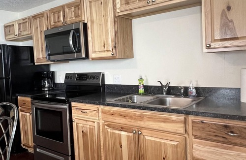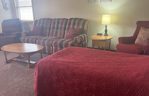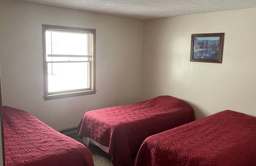 Our 1 bedroom unit is located directly on the water at the southwest end of Sodus Bay, on the second floor of Bay Bridge Sport Shop. There are 3 twin beds in the bedroom and 1 additional twin bed in the living area, providing accommodations for up to 4 people. Amenities include a full kitchen with cooking utensils, full bathroom, all linens provided, private entrance with a deck overlooking the water, WiFi, and DirectTV. The unit was renovated in January 2024.