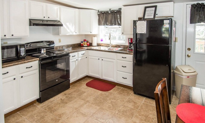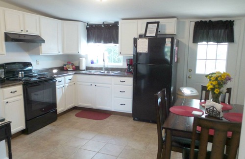 This apartment is the garage apartment at our home...Misfit Manor. The apartment was completely remodeled as of June 2015 and the kitchen was update again in 2019. This home features new furnishings and mattresses. There are two bedrooms both with queen size beds. There is one full bathroom (shower). The family room is spacious and cozy with 50” flat screen smart TV. There is a screened in patio with a patio set, lights and ceiling fan...perfect for chilling out in the evening with a glass of wine. Our kitchen is fully furnished with a full-size refrigerator, 4-burner stove with oven (electric), microwave, large sink, blender, coffee maker, toaster and plenty of storage. There is a full size washer and dryer for your use. We keep detergent and fabric softener stocked. The home is kept completely pet free and smoke free. There is central air conditioning, Dish TV and Wifi.