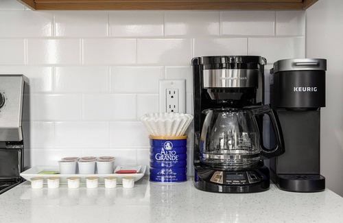 --Coffee/tea station (Keurig, regular drip, and french press)