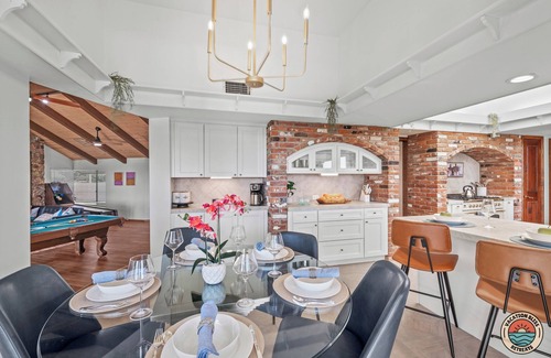 Welcome to the 7BR Hilltop Haven w/Pool, Spa, Games & Mesmerizing Views, an exquisite destination in El Cajon that effortlessly combines luxury and versatility, making it an ideal choice for your dream wedding. This magnificent property boasts breathtaking views of mountains, city lights, and sunsets, setting a romantic backdrop for your ceremony and celebrations. With ample space for up to 30 guests, you can host intimate gatherings or grand events within this fantastic estate.