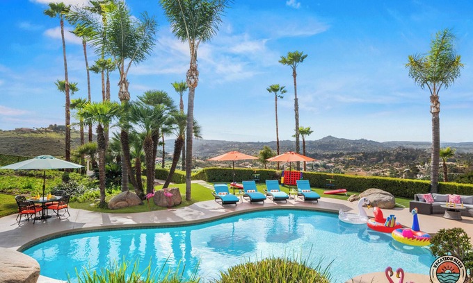 Best-rates for the Rancho San Diego house starts from $1,407 per night with includes Fireplace/Heating, Pool, TV, Sports/Activities, Guest Services, Entertainment, Internet, Air Conditioner, Parking, View, Barbecue/Outdoor Cooking, Hot Tub, Laundry, Wellness Facilities, Pet Friendly, Private Pool, Ocean View, Balcony/Terrace, Security/Safety, Child Friendly, Kitchen, Bedding/Linens with all other amenities. Perfect for Weddings is committed to ensuring every guest experiences a comfortable and extraordinary stay, whether planning a romantic getaway, a honeymoon, a pet-friendly stay, or celebrating with the entire wedding party.