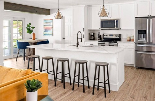 This expansive ranch-style home features an open floor plan, with a spacious family room that flows seamlessly into the kitchen. The kitchen boasts a large island with seating, a separate eat-in area, and a formal dining room, providing plenty of space for everyone to gather and enjoy meals together. With 6 bedrooms and over 12+ beds, the home’s generous layout ensures ample space for large groups to spread out and relax. An additional standout feature of the home is the dedicated game room, offering endless hours of entertainment for all.