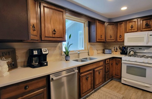 The house will be stocked with some starter supplies such as coffee, filters, sugar, salt, spices, paper goods (towels, tissues, toilet), soap (hand, dish, dishwasher, laundry), garbage bags, propane, roasting sticks, and firewood.