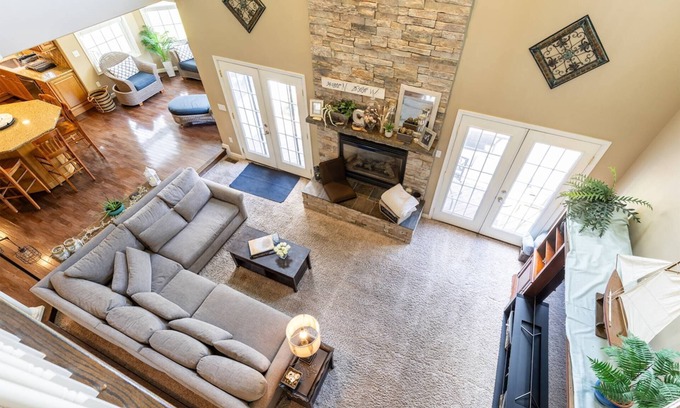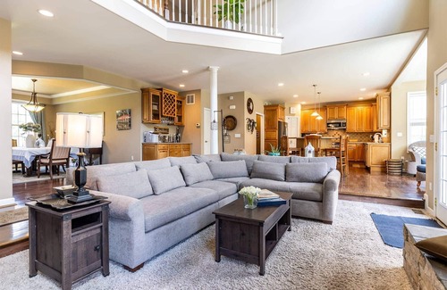 Main Floor Family Room: Oversized sectional, big screen TV, gas fireplace