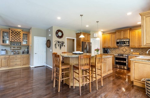 Enjoy your stay in this expansive custom-built Severna Park home! Spacious enough to comfortably sleep 12, in the 6 bedrooms and 5 bathrooms, including a luxurious King Suite with a private deck, spacious spa bath and walk-in closet. The fully finished lower level is a retreat of its own, complete with a sports bar, entertainment space with games, multiple flat-screen TVs and bedroom and full bath.