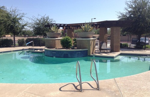 Welcome to beautiful Surprise Arizona! Our condo is a 2 bedroom, 2 bath home with 1200 square feet of living space with 10 foot high ceilings in all rooms. It sleeps 4-6 people comfortably. There is a one car garage and your very own assigned parking spot. There is also a private balcony, a playground area, fitness center, crescent-shaped pool and jacuzzi spa. There are plenty of walking paths to get in some exercise as well.