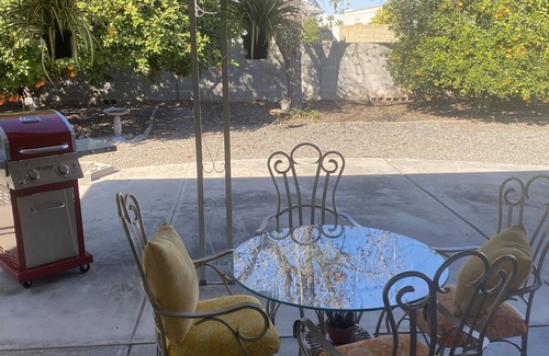 Beautifully updated midcentury modern home. There is no better way to start the day than waking up in the morning and enjoying a fresh orange or grapefruit juice from the 6 mature fruit trees just outside your door. Sit outside and enjoy the abundance of wildlife and birds that Arizona has to offer or watch a beautiful sunrise from the main living room floor to ceiling windows. Sit back and relax and watch TV on our new 75-inch smart TV or enjoy some peace and quiet in our relaxing quiet neighborhood.