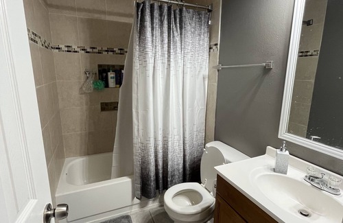 Stay in this spacious and comfortable home close to everything you need to access within a few minutes away, the bedrooms have blackout curtains , the kitchen has all the utensils pots and pans. Toaster coffee maker and the patio has an electric grill and furniture to seat in the backyard.