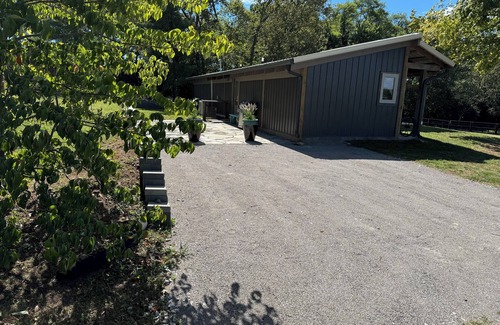 Our Springwood Shed House has the best view on the farm. Each room has floor to ceiling sliding glass doors so you can enjoy the view from your bed, living room, kitchen, porch and patio. There are ceiling fans, TVs, and independent thermostats for each room. We also have another listing, Springwood Cottage on the same farm lane for additional people you are traveling with.
