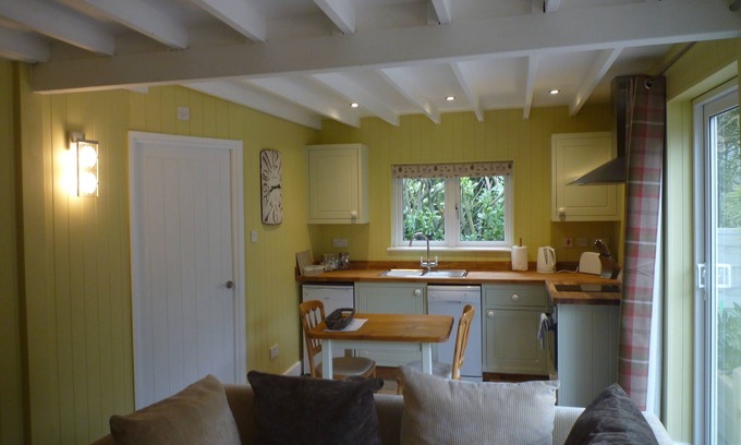 Owls Roost and Squirell are well equipped with wood burning stove (squirrel electric stove) kitchen with hob oven fridge and dishwasher, comfortable lounge with TV with Dvd , downstairs shower room with double shower wc and basin. Upstairs there is a bedroom with king size bed and picture window overlooking garden and open country side. Own patio with garden furniture. Free WiFi ample of road parking