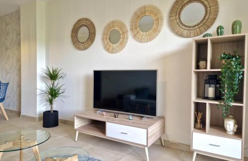SR Colinas del Faro 2 BDR in Mijas Costa is located in Mijas Costa, just 8.4 miles from La Cala Golf and 10 miles from Plaza de España. The air-conditioned accommodation is a 11-minute walk from Playa del Charcón, and guests can benefit from on-site private parking and complimentary Wifi. The apartment features an outdoor swimming pool and an elevator. Featuring a terrace and mountain views, the spacious apartment includes 2 bedrooms, a living room, flat-screen TV, an equipped kitchen, and 2 bathrooms with a bidet and a bath. Towels and bed linen are available in the apartment. The accommodation is non-smoking. Puerto Marina Benalmadena is 14 miles from the apartment, while Automobile and Fashion Museum is 21 miles from the property. Malaga Airport is 20 miles away.