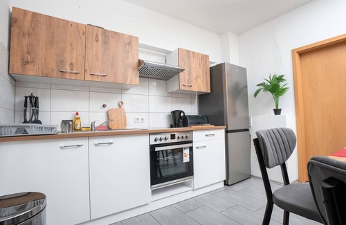 Nestled in Recklinghausen, this 4-bedroom, 2-bathroom apartment brings it all within your reach. Fans of nature and the outdoors will love being 20 minutes by car from Westfalenpark Dortmund and 9 minutes from Stadthafen. If you'd like to explore the area, you can make the 14-minute drive to Veltins-Arena or the 15-minute drive to Starlight Express Theater.