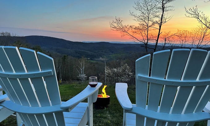 We welcome you to explore the magic of Sunset Ridge Chalet (aka SRC). Ideally situated within the Hudson Valley/Berkshires cultural corridor, SRC offers unparalleled panoramic sunset views of the mountains. Sitting on 7 private acres the Chalet offers our guests the unique opportunity to disconnect from their busy lives and reconnect with themselves, family, or friends. Imagine starting the day with sunrise yoga on the mahogany deck and ending it with sunset cocktails on the same deck.