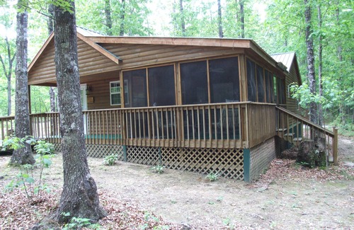 Our Summer Shade cabin is a stunning cabin with two bedrooms, one queen and one king sized bed for those restful nights, plus a single bed loft. This particular cabin brings the outdoors in with its authentic wood floors and walls. Enjoy your morning coffee and your evening meals on the large covered and screened in porch overlooking a wooded ravine. We accept pets with a $50 fee for up to two pets per visit plus tax. Additional pet is $25 per pet if approved.