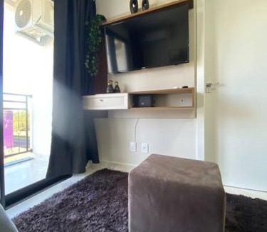 This property offers access to a balcony and free private parking. The accommodation offers a 24-hour front desk and an elevator for guests. With free Wifi, this 1-bedroom apartment features a flat-screen TV, a washing machine, and a fully equipped kitchen with a fridge and stovetop. The accommodation is non-smoking. A car rental service is available at Stúdio de 1 Quarto, Wifi 500mb, Condominio com Elevador, 1 Vaga de Garagem, Cozinha Completa - Indicado para Grupos, Hospedes a Trabalho, Família e Pets. Adalberto Mendes da Silva Airport is 32 miles from the property.