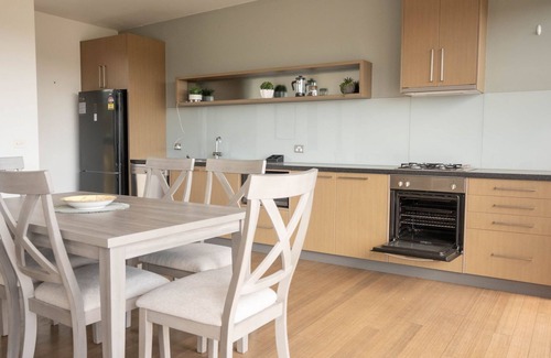 Escape to the comfort and luxury of this beautiful two-storey apartment, featuring breathtaking panoramic views of the St Andrews Beach Golf Course. Ideally located for those seeking a peaceful retreat, this apartment is also close to some of the Mornington Peninsula’s top attractions. Whether you’re planning a family getaway, a romantic escape, a golfing holiday, or an executive stay, this stylish apartment offers the perfect combination of privacy, convenience, and modern amenities.